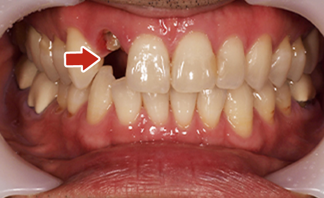 | 主訴 | 右前歯が取れた(右上2) |